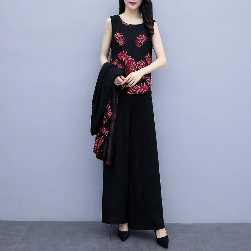 Free shipping Lady 3 Piece Set 2019 Spring Autumn Women's Tank + Cardigan Long Sleeve Tops +Wide Leg Pants Trouse